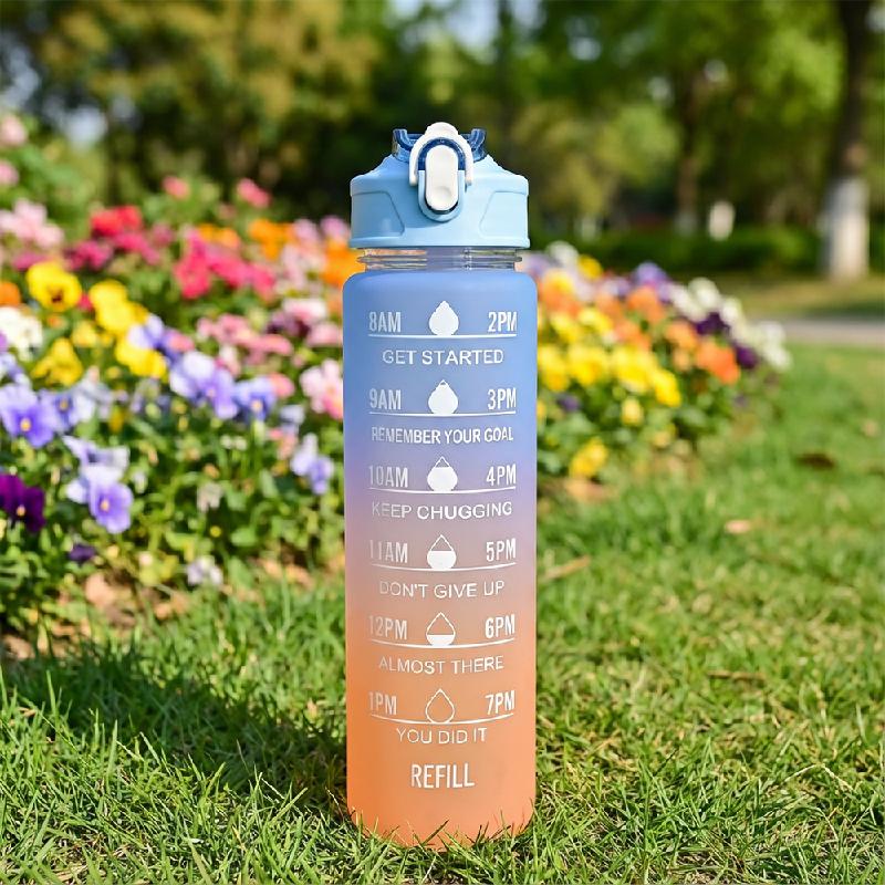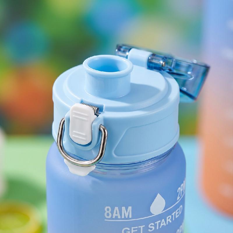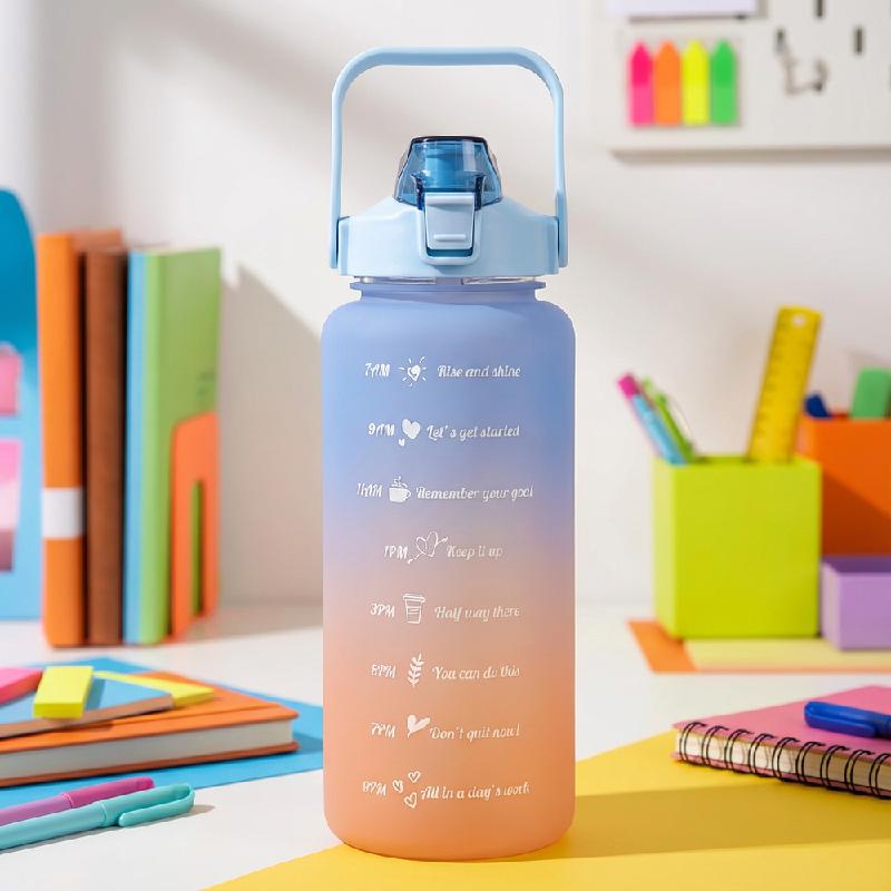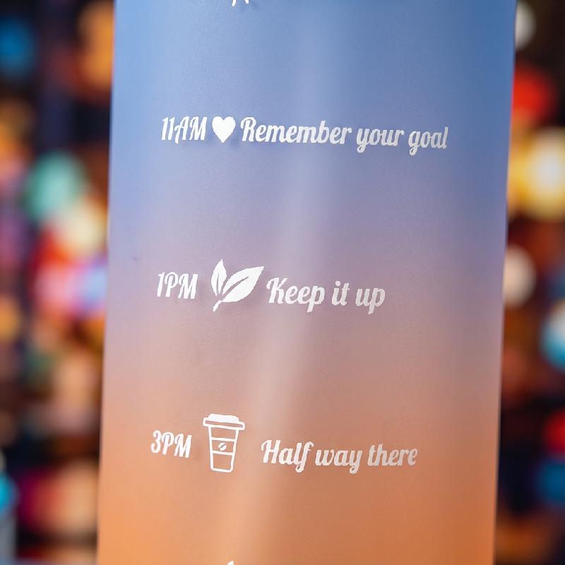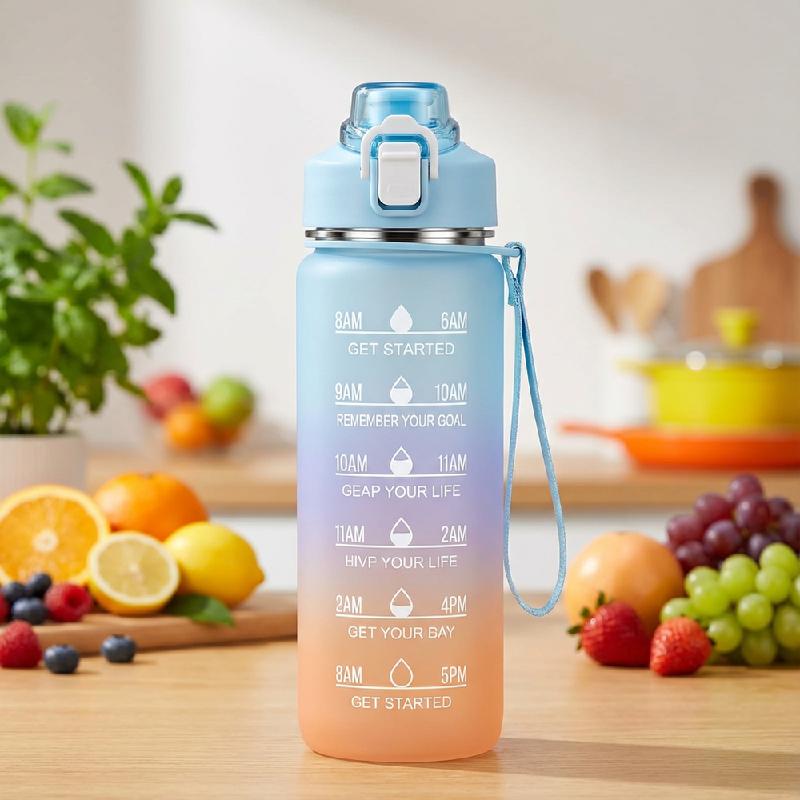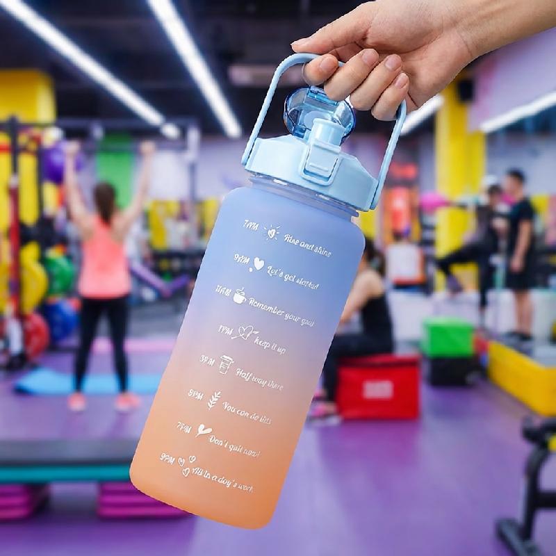 - Set de botellas deportivas: 2000ml, 1000ml y 330ml con marcadores de tiempo por hora que ayudan a mantener una hidratación constante durante el día
