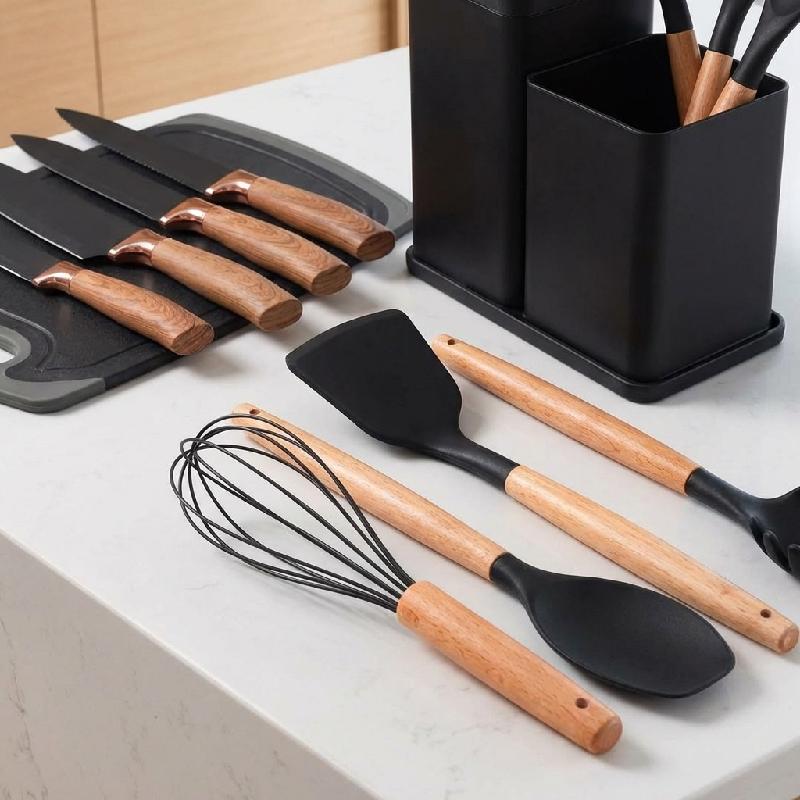 SET JUEGO DE UTENSILIOS DE COCINA POR 19 PIEZAS NEGRO F2401N