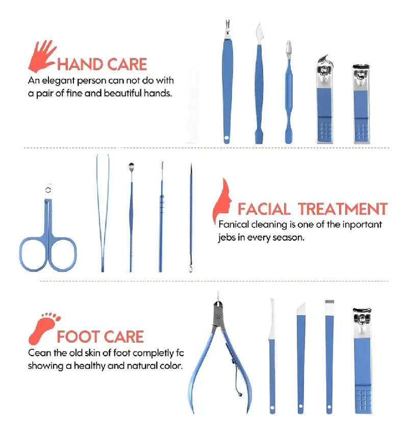 Conjuntos de decoración de uñas: Proporcione conjuntos de manicura y pedicura de alta calidad. Fuerte y duradero, no se desvanecerá, extremadamente duro y afilado. Diseñado para uso de por vida. Manicura, pedicura, eliminación de acné, exfoliación, recorte de cejas.