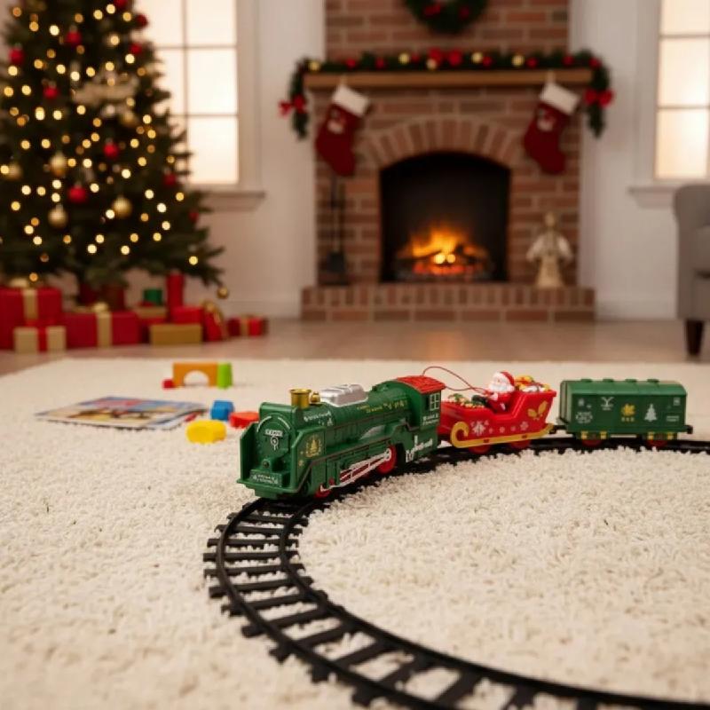 -Celebra la Navidad con un tren eléctrico temático lleno de luces y sonido.
