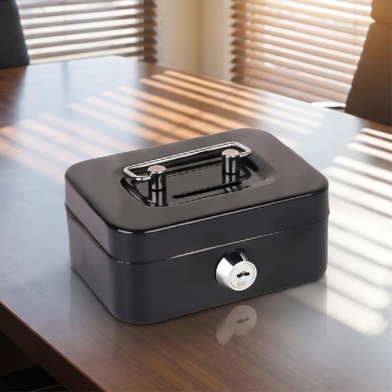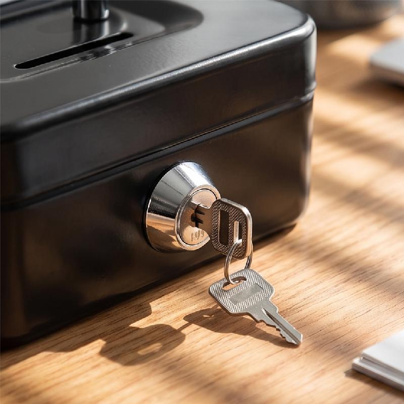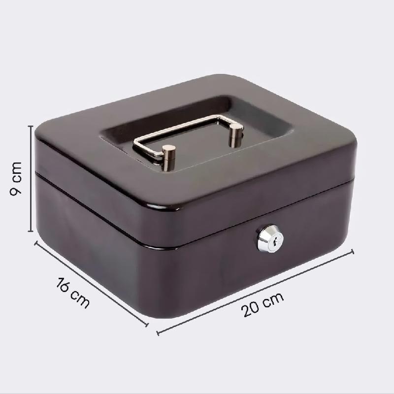 CAJA FUERTE COFRE SEGURIDAD METAL PORTATIL LLAVE GUARDAVALORES DINERO DOCUMENTOS 20X16X9CM NEGRO PTQ1246 H12460