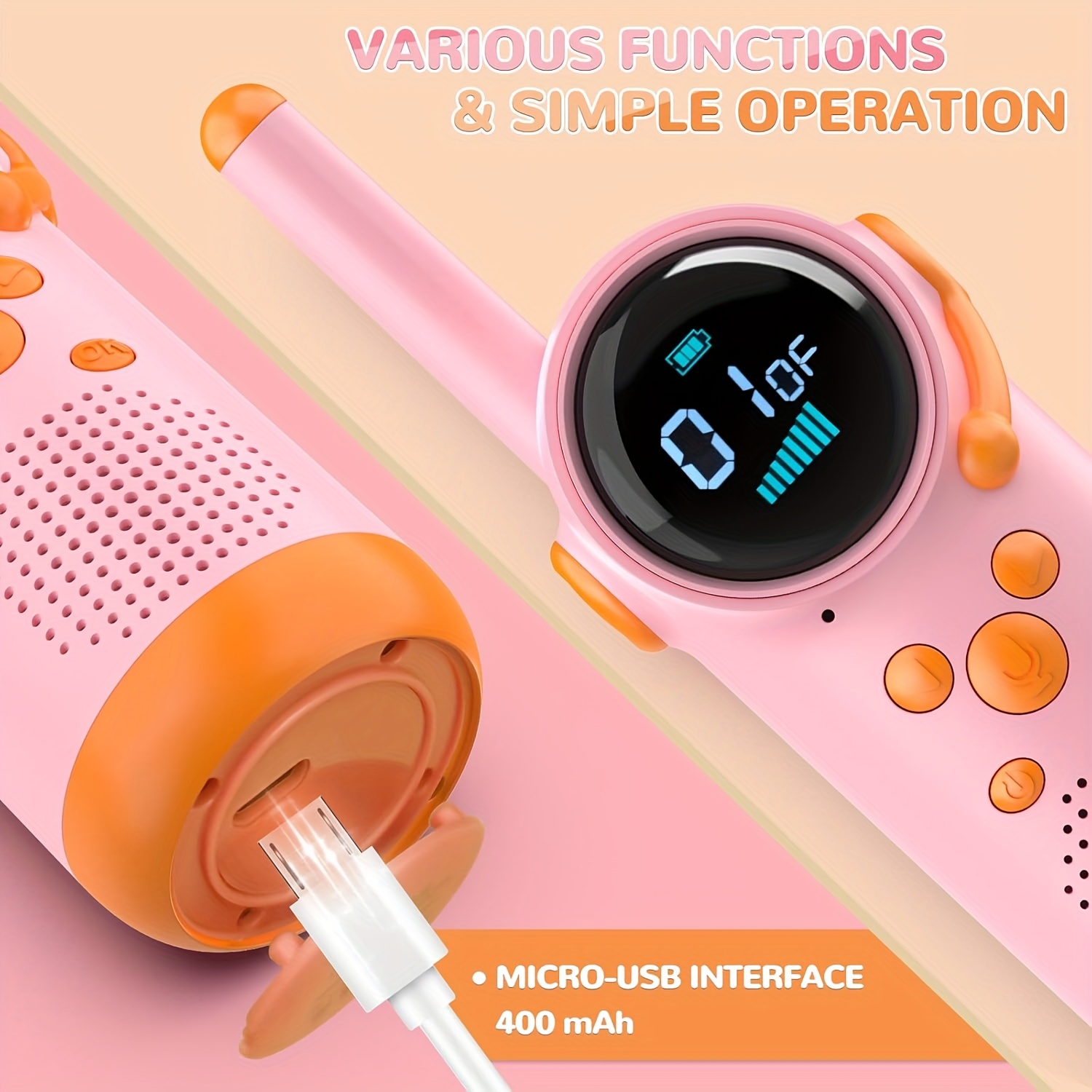 1. Walkie-talkie especialmente diseñado para niños: fabricado con material ABS seguro y respetuoso con el medio ambiente, con un diseño elegante y un tacto cómodo, es ideal para que lo usen los niños de 3 a 12 años.