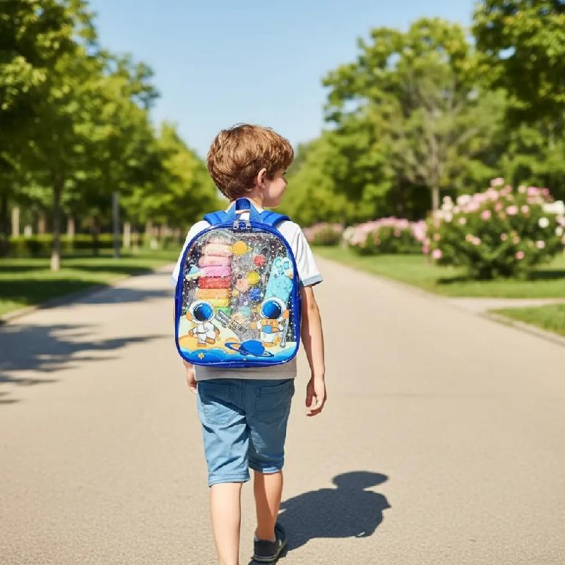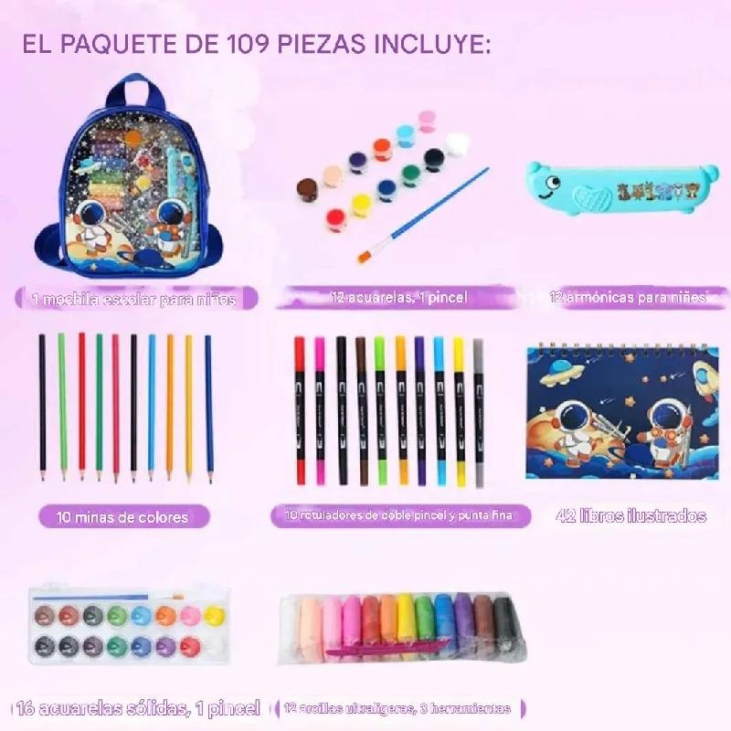 KIT ARTE SET ESCOLAR MORRAL MALETA BOLSO 109 PIEZAS AZUL EMS-44 JEMS44A