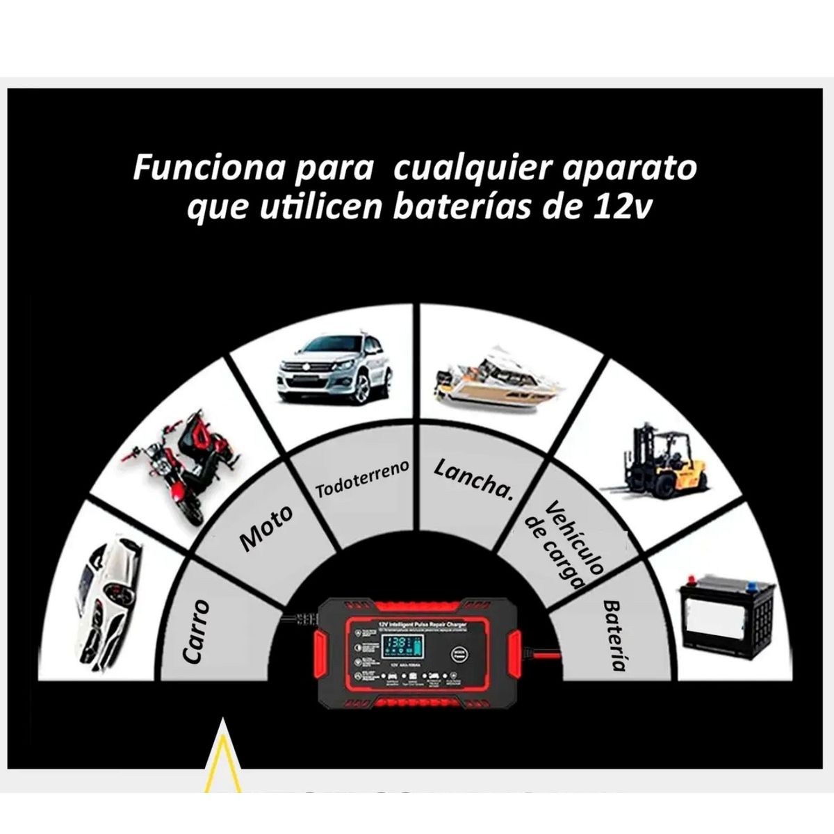 - Rango de aplicación para baterías entre 4Ah y 100Ah, ideal para autos, motos, botes, podadoras y más