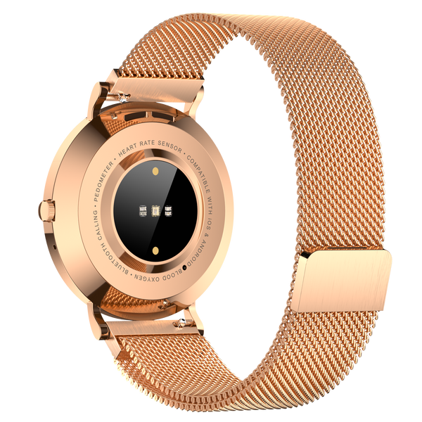 - Diseño elegante de 8 mm de grosor con malla milanesa gold rose, hipoalergénica y ajustable.