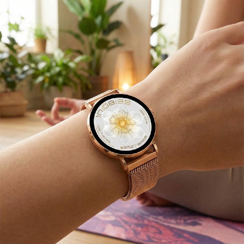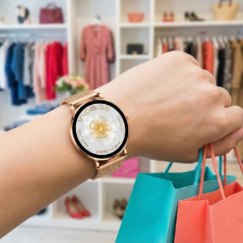 RELOJ SMARTWATCH AURAFIT STELLA AMOLED MUJER IP68 DOBLE MALLA ORO ROSA MKP P008MK