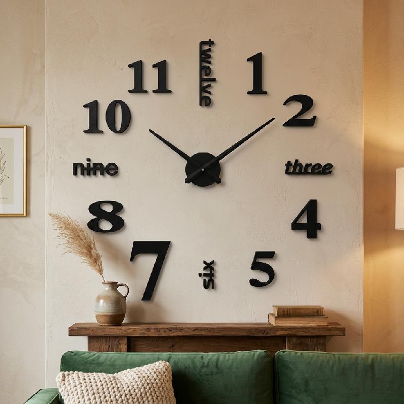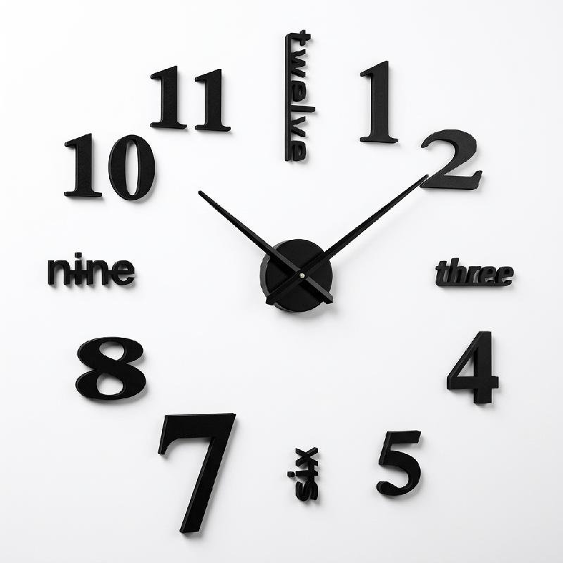RELOJ DE PARED ADHESIVO PEGATINAS 3D ZH015 COLOR NEGRO F25231