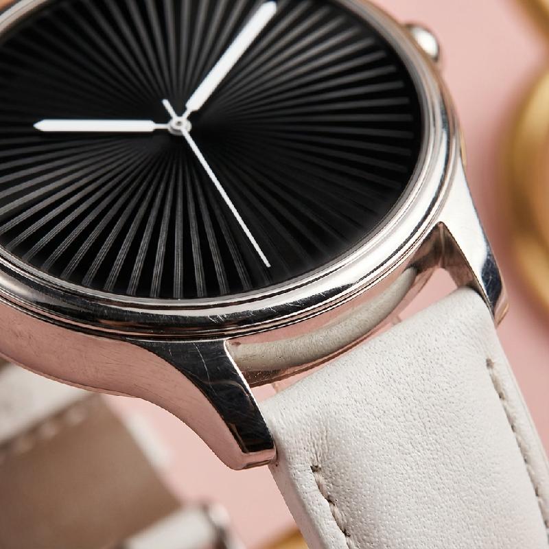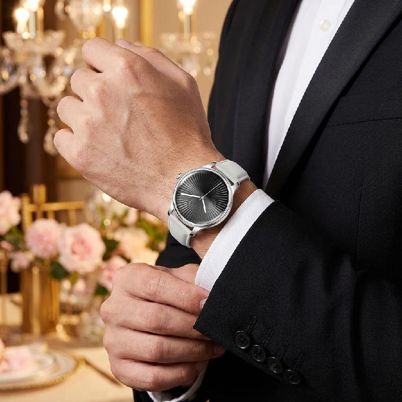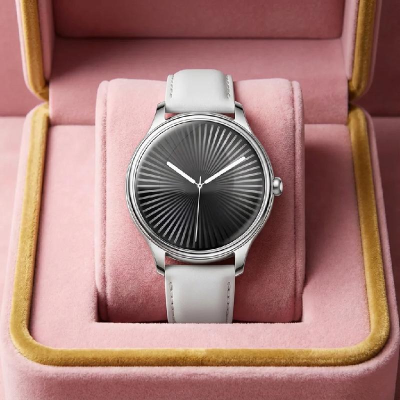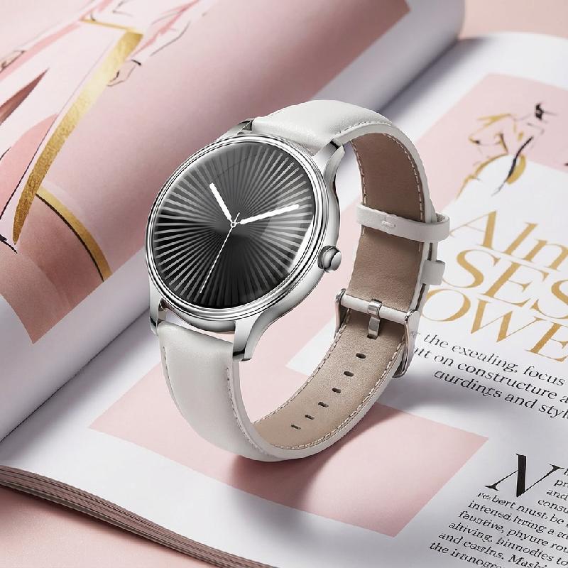 - Smartwatch versión Sport con diseño ultradelgado en acabado dorado premium y correa tipo cuero elegante