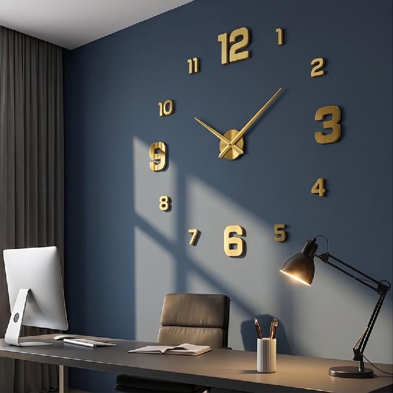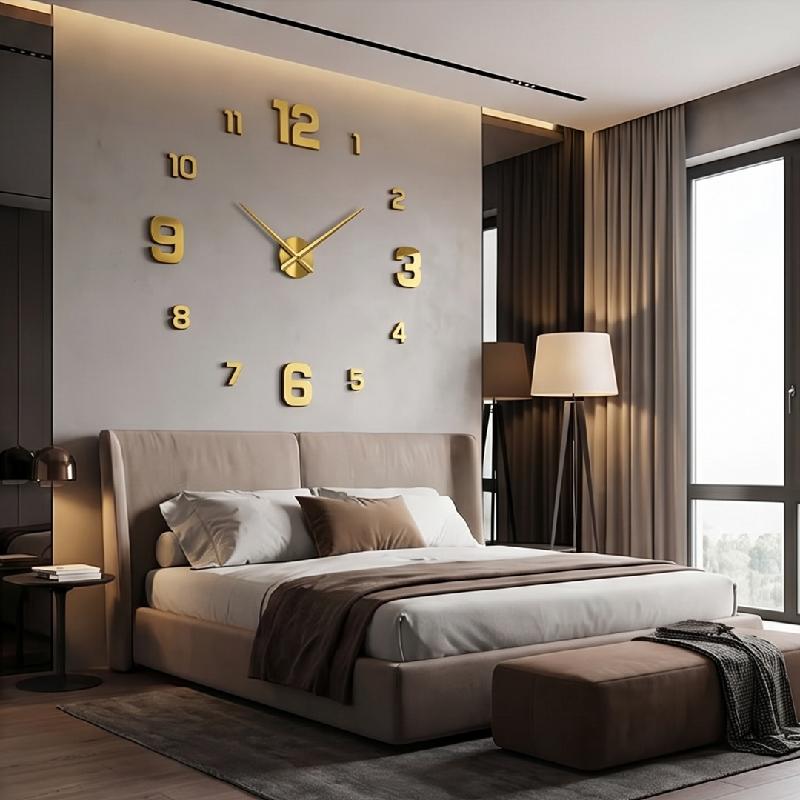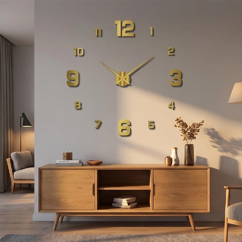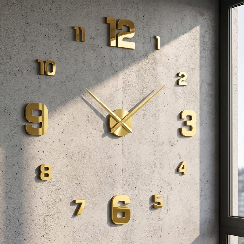 RELOJ DE PARED ADHESIVO PEGATINAS 3D ZH005 COLOR DORADO C6 ZH005D