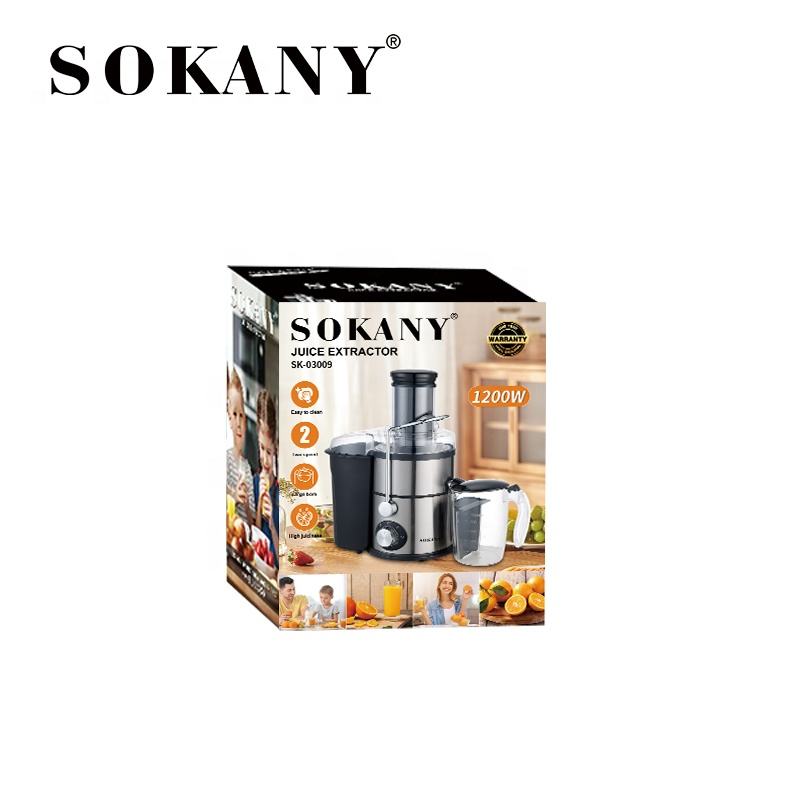 - Extractor de jugo eléctrico SOKANY SK-03009 de alta potencia, ideal para frutas y vegetales frescos.