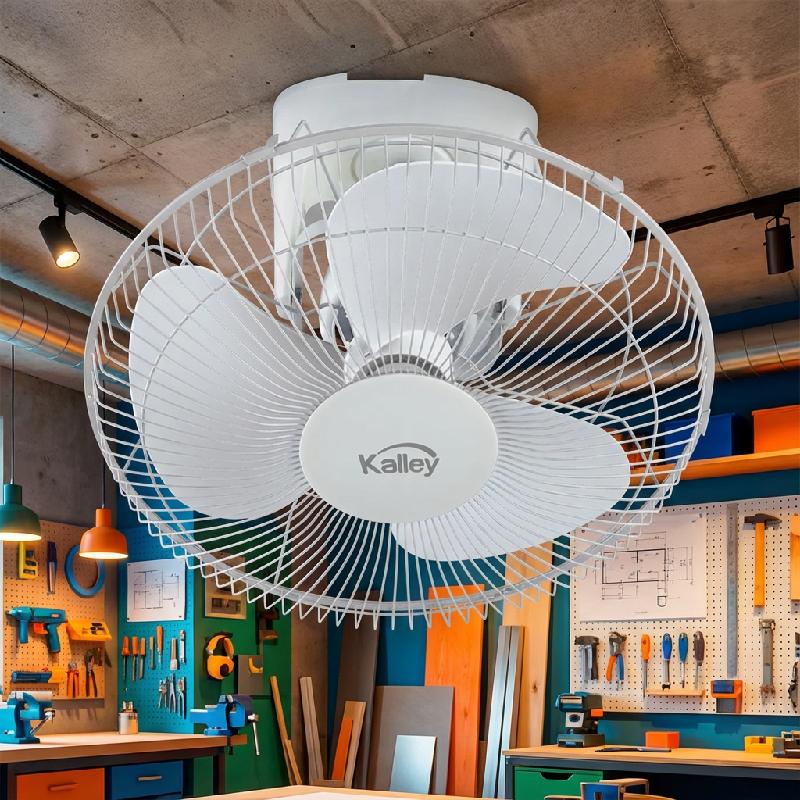 - Ventilador orbital Kalley de 16 pulgadas ideal para refrigerar espacios con una distribución de aire eficiente.