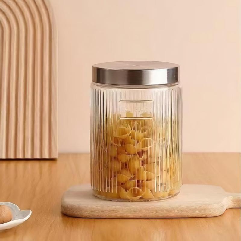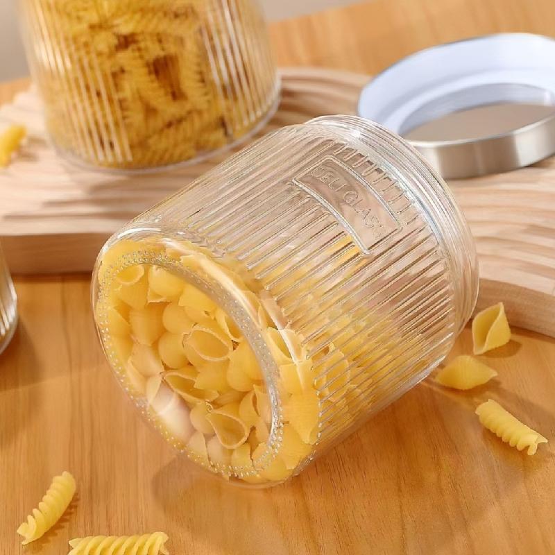Uso multifuncional: este tarro de vidrio cubierto de metal tiene un excelente rendimiento de sellado y puede mantener la comida seca. Se puede utilizar para almacenar granos de café, pasta, frutas secas, granos, etc. Colocarlo en la cocina ahorra mucho espacio.