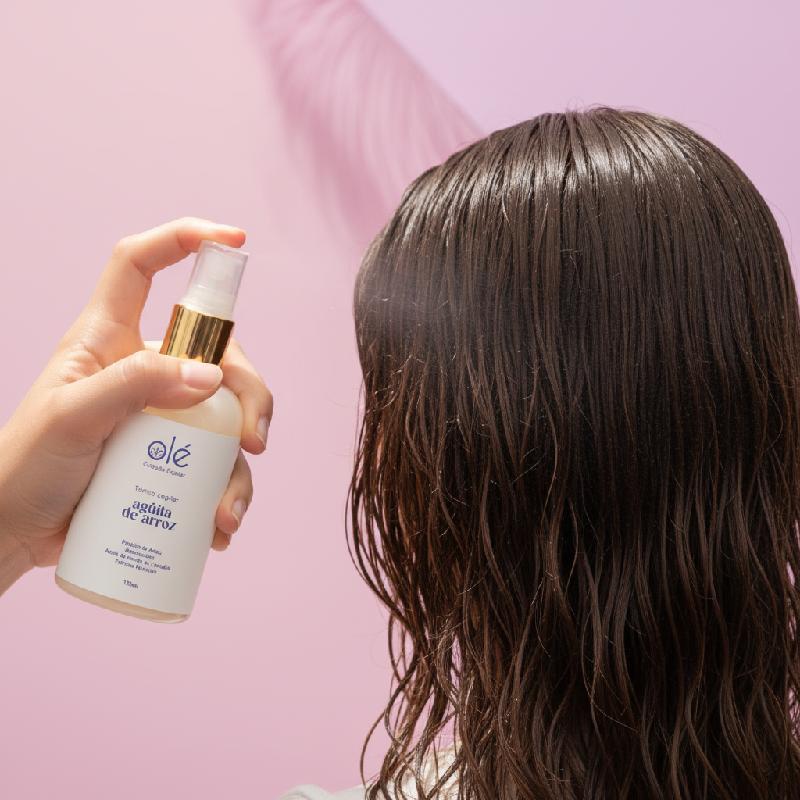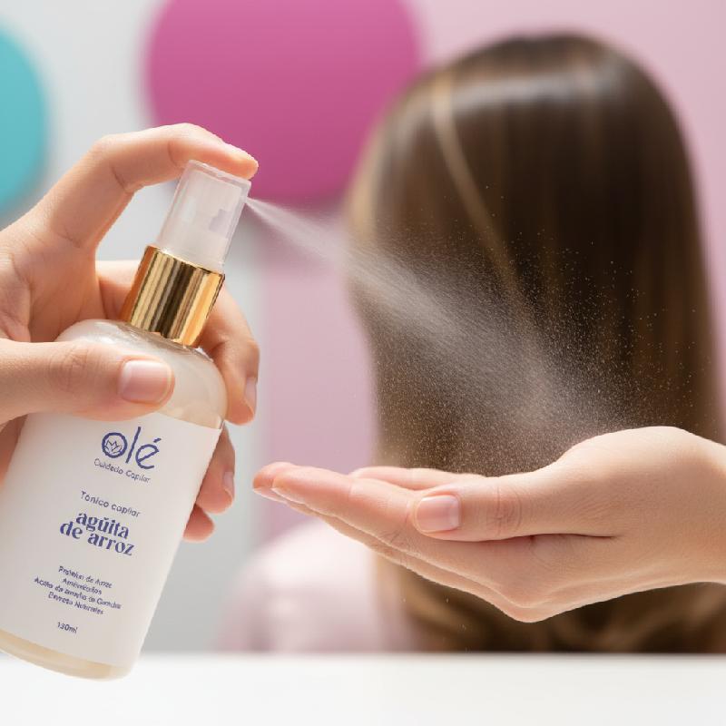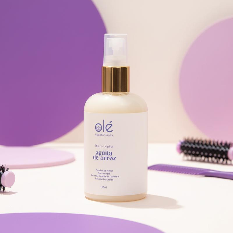 - Agüita de Arroz Olé Capilar formulada como tónico estimulante del crecimiento capilar y fortalecedor del folículo piloso.