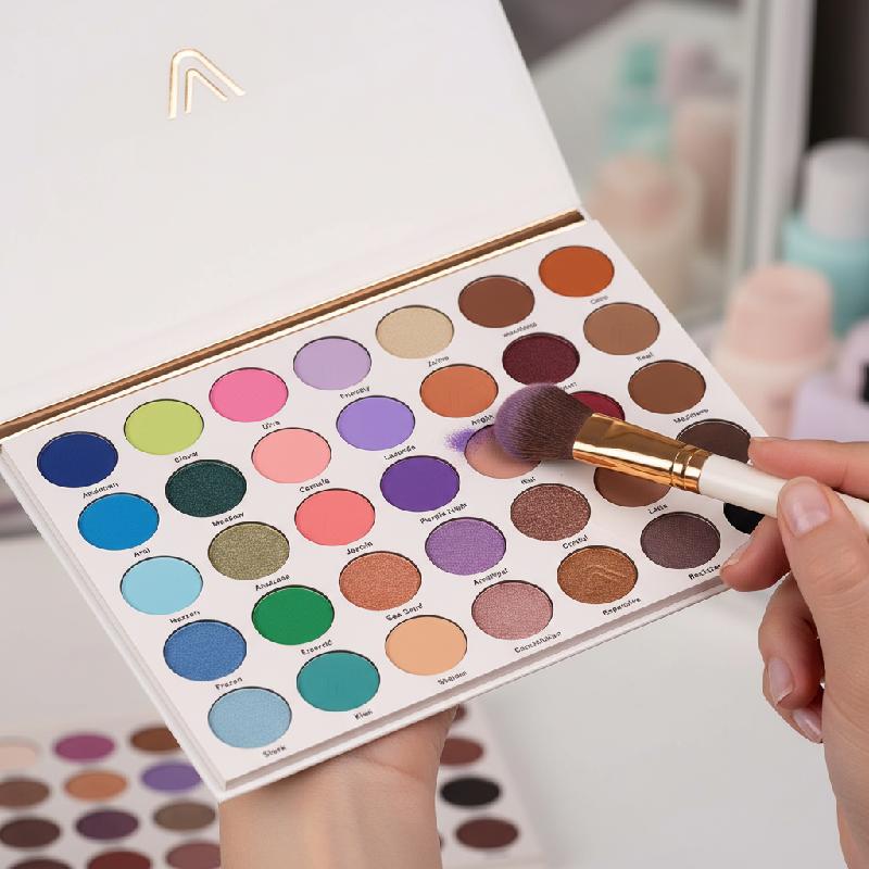 - Paleta de Sombras Atenea Profesional Marvelous con 35 tonos en gama de colores fríos, ideal para maquillaje diario y de noche.