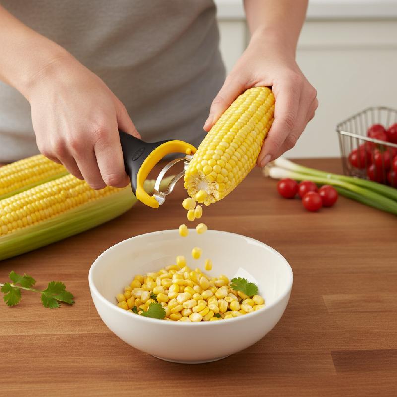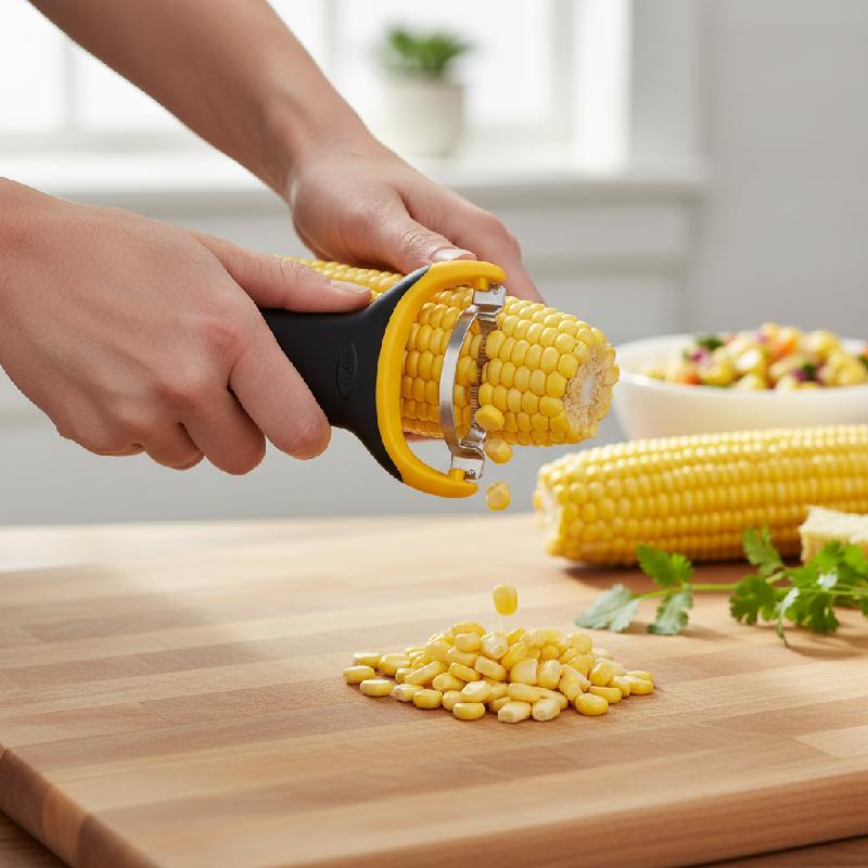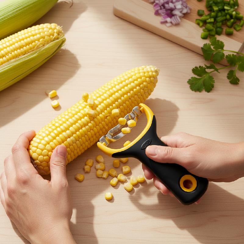 - Diseño compacto en forma de Y que facilita pelar el maíz sin esfuerzo ni fatiga.