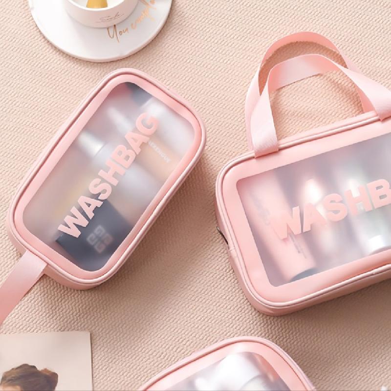 COSMETIQUERA WASHBAG BOLSO ORGANIZADOR MAQUILLAJE PORTATIL IMPERMEABLE SET X3 ROSADO MULTITAMAÑO BL-619 BL619R