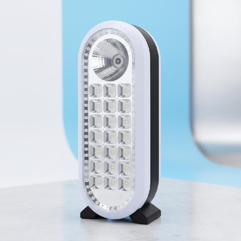 - Lámpara LED recargable multifuncional, diseñada para funcionar tanto con batería recargable incorporada como con batería seca, ideal para emergencias y uso diario.