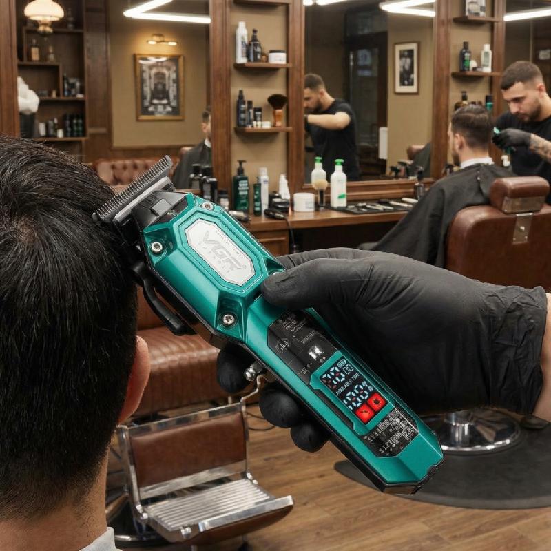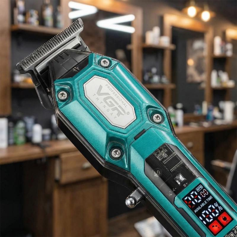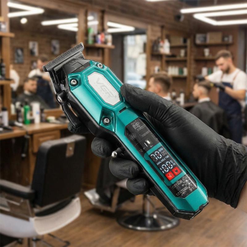 - Cortadora de pelo trimmer profesional VGR V-900, diseñada para uso barberil y doméstico, con motor de alto rendimiento de 7000 RPM para cortes precisos y uniformes.