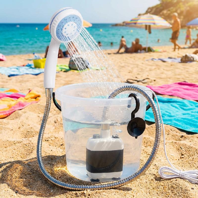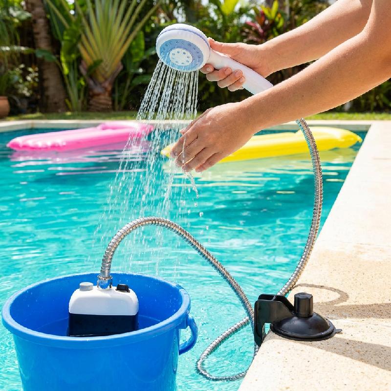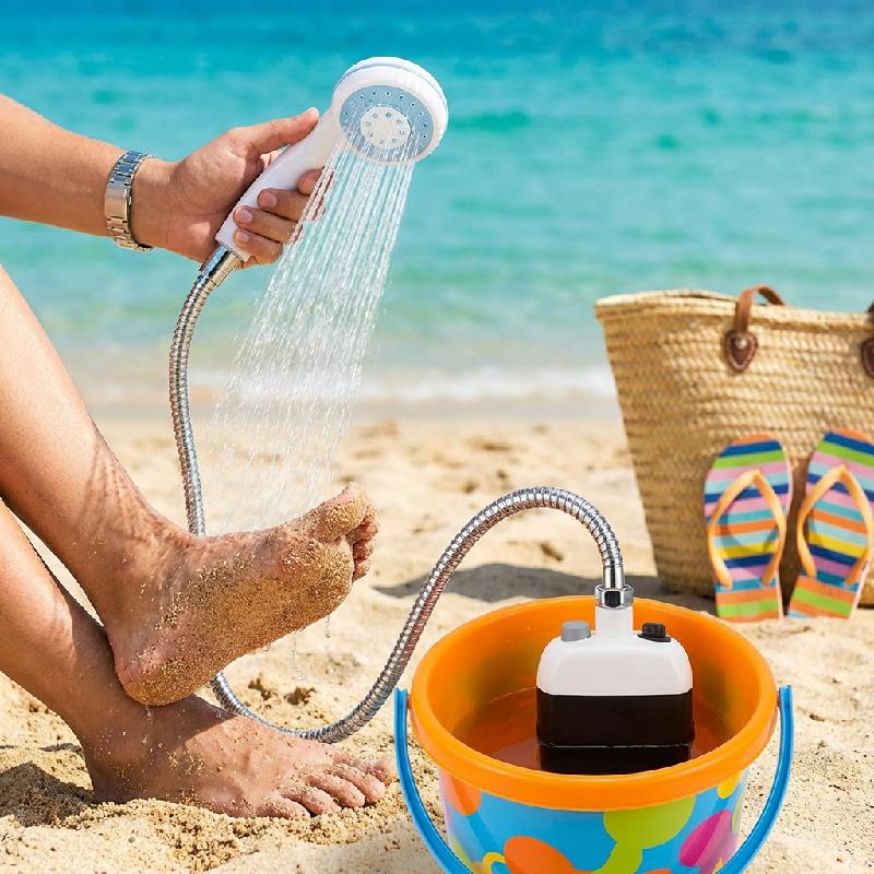 - Uso versátil para duchas interiores y exteriores, limpieza de mascotas, lavado de autos, riego de jardines y viajes de camping.