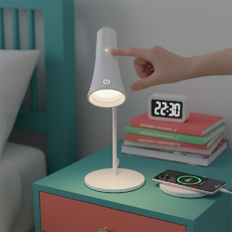 - Lámpara LED recargable multifunción 4 en 1 con articulación magnética giratoria, diseñada para usarse como lámpara de escritorio, clip, pared, linterna y cargador portátil.