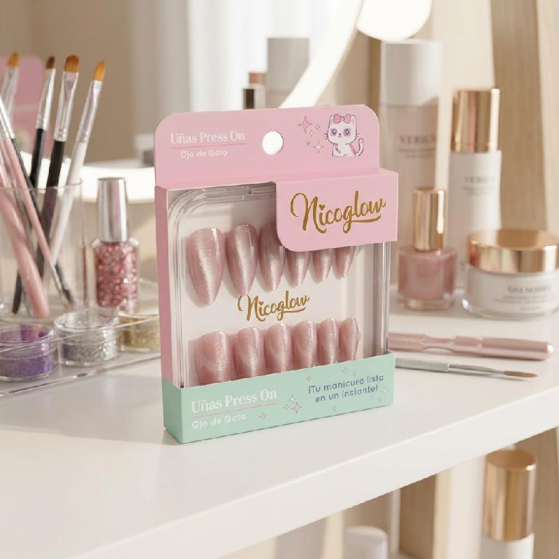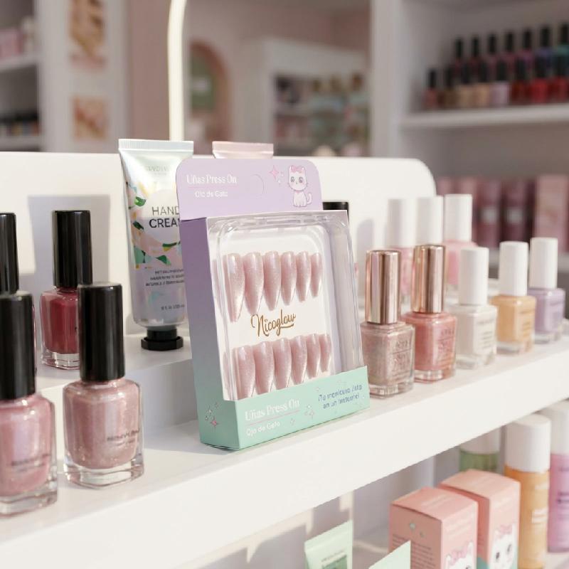 Material: Acrílico o gel press-on de alta durabilidad, reutilizables con pegamento adecuado.