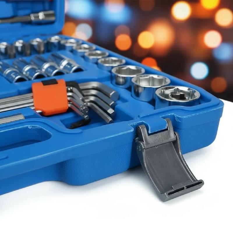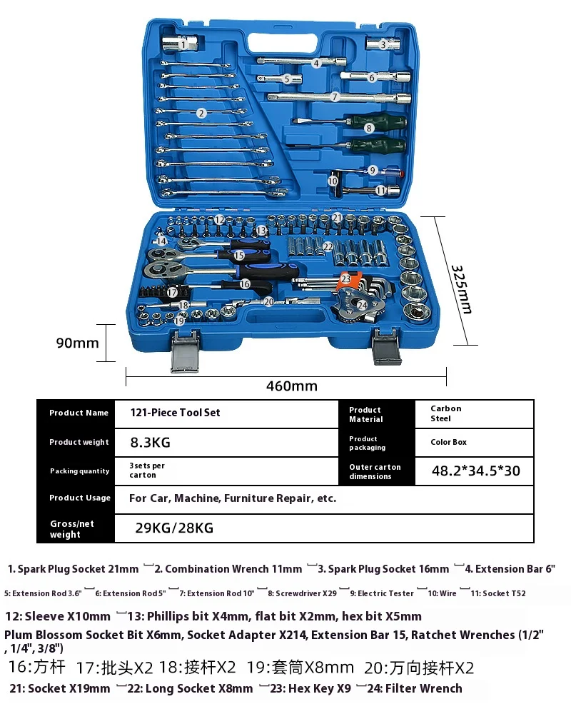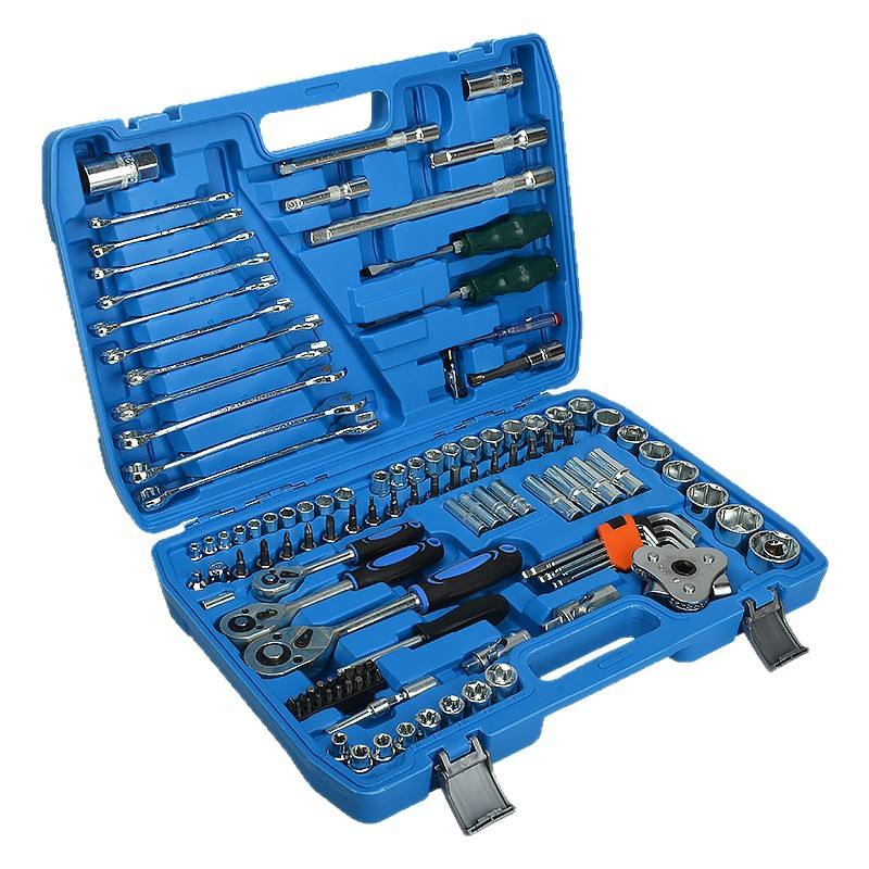- Autoclé profesional de 121 piezas modelo JL-121 TEENO, ideal para trabajos mecánicos automotrices y de mantenimiento general, presentado en estuche rígido para fácil transporte y almacenamiento.