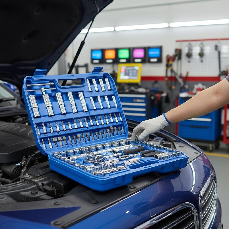 - Juego de herramientas mecánicas fabricado en acero Chrome Vanadium (Cr-V), resistente al desgaste y al alto torque, ideal para uso automotriz y profesional.