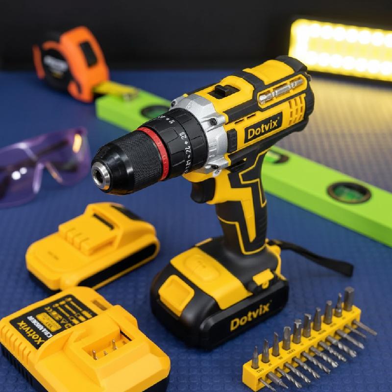 - Taladro percutor inalámbrico DOTVIX de alto rendimiento, diseñado para trabajos profesionales de construcción y remodelación.