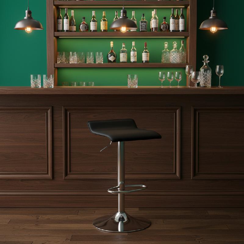 - Silla bar con diseño moderno y estilizado, ideal para ambientes contemporáneos y minimalistas.
