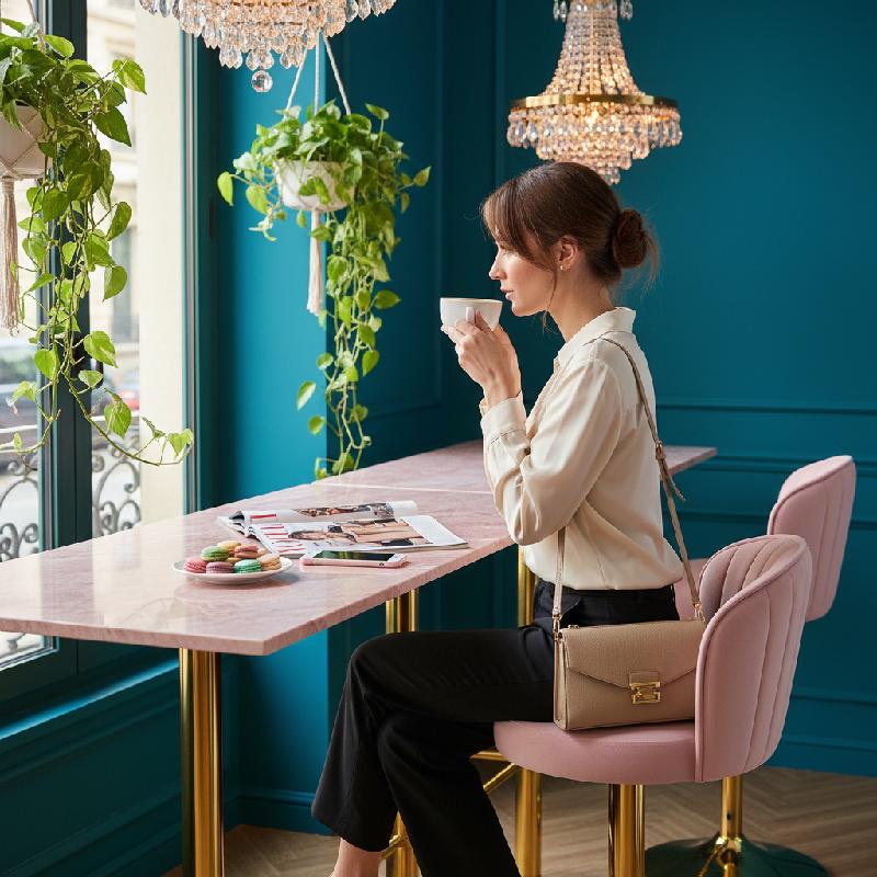 - La Silla Bar Prigos destaca por su estilo contemporáneo con un elegante acabado en tono dorado que aporta carácter y sofisticación sin sobrecargar el ambiente.