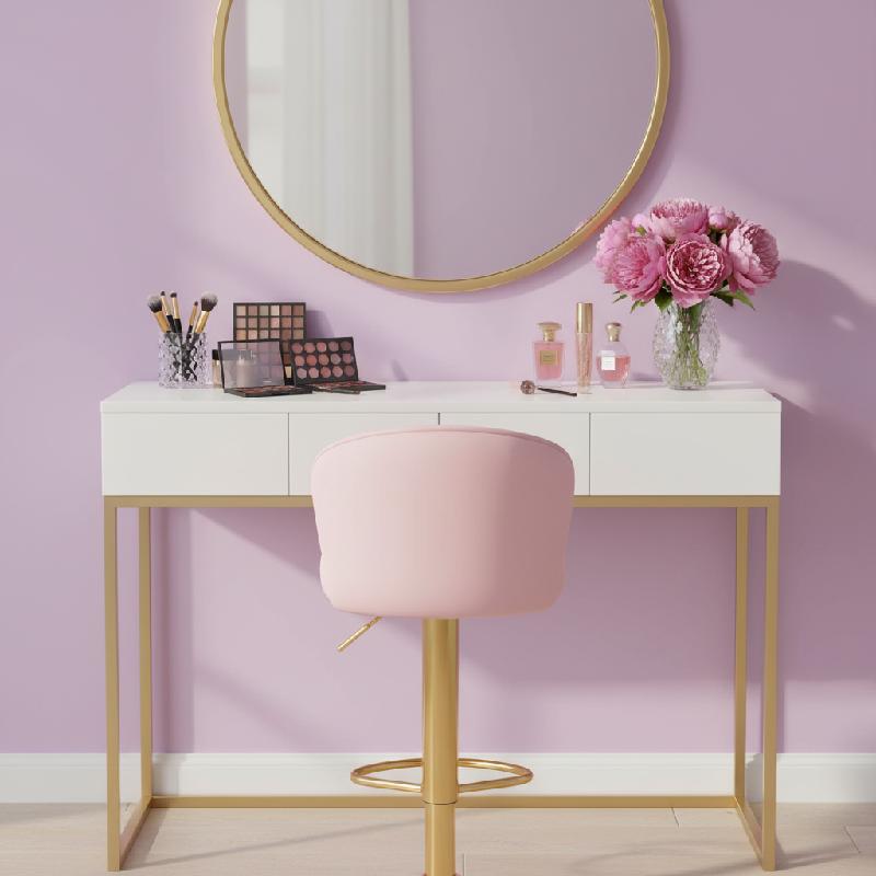 - Su estructura está fabricada en hierro lacado en acabado dorado, lo que garantiza resistencia, estabilidad y una presencia visual llamativa.