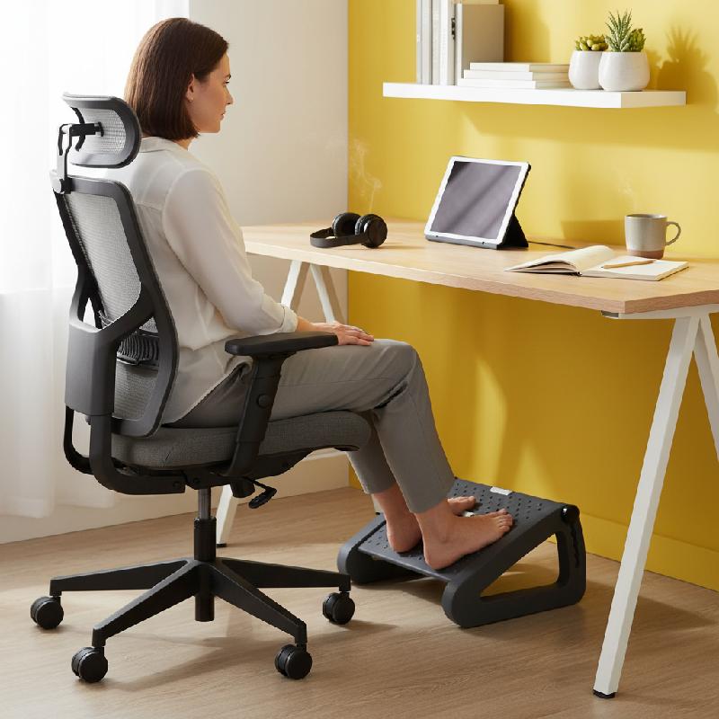 - Ayuda a mejorar la circulación sanguínea en piernas y pies al mantener una postura elevada y cómoda durante jornadas prolongadas.