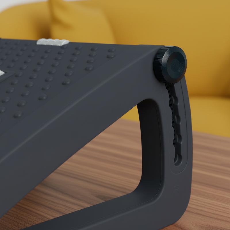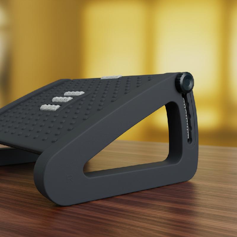 - Reposa Pies Triángulo Ajustable con diseño ergonómico que favorece una postura correcta al mantener las piernas en un ángulo adecuado, ayudando a reducir la tensión lumbar y la presión en la zona baja de la espalda.