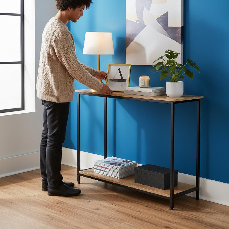 - Superficie superior amplia y funcional, adecuada para colocar lámparas, elementos decorativos, marcos, llaves u objetos de uso diario.