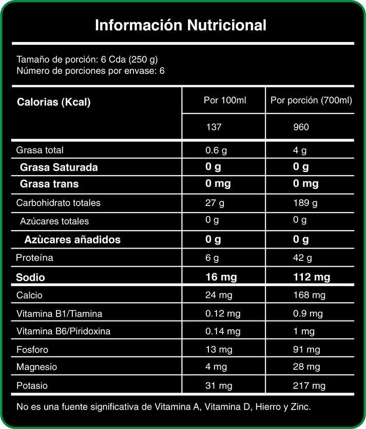 - Incluye una elevada proporción de carbohidratos complejos provenientes de fuentes como la avena, que ayudan a incrementar la energía y el rendimiento físico.