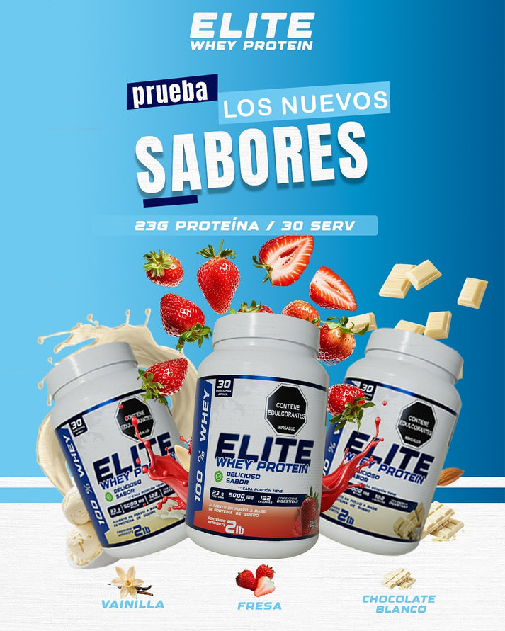 ELITE WHEY PROTEIN ELITE SUPPLEMENTS VAINILLA FRESA O CHOCOLATE BLANCO MKP