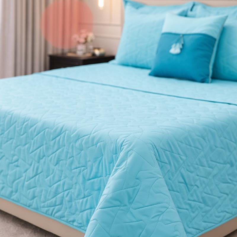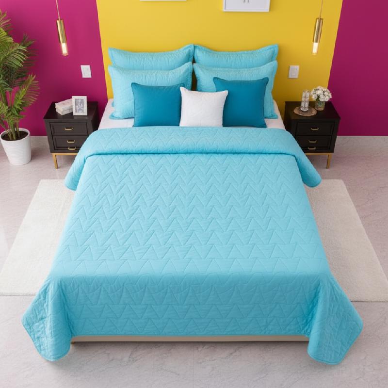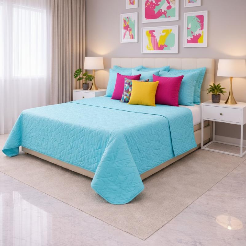 - Colcha LISBOA elaborada en microfibra ultra suave, con diseño acolchado moderno en tono turquesa.