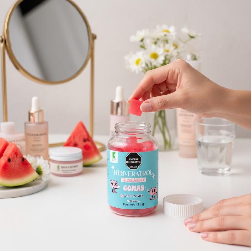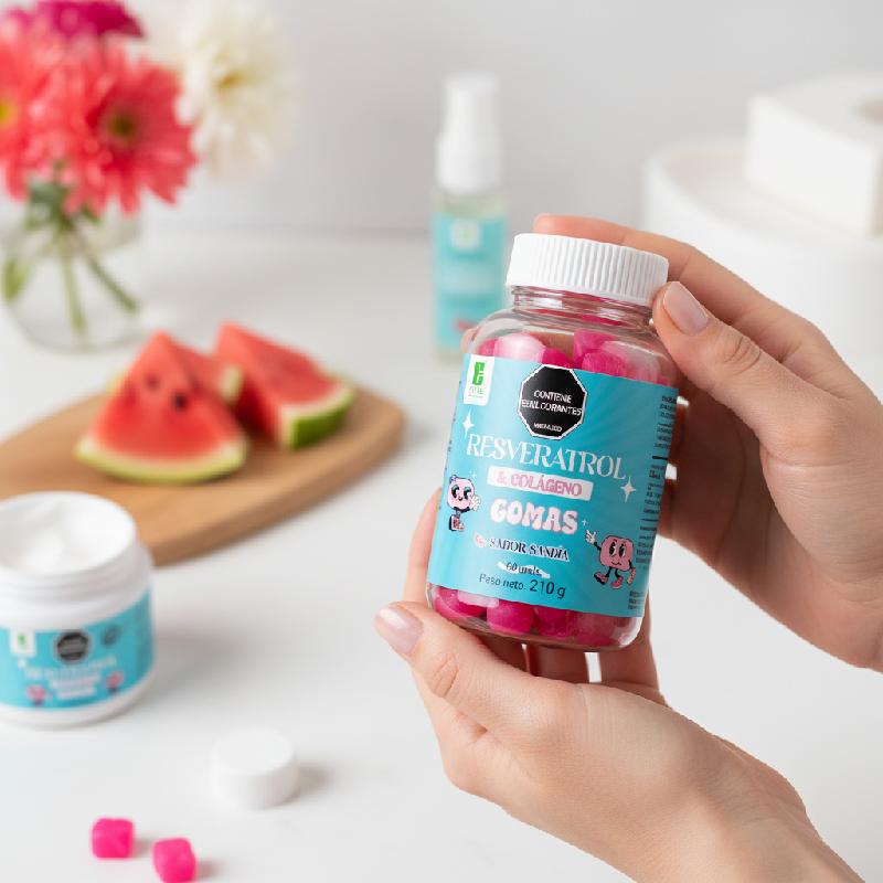 - Fórmula que combina colágeno con resveratrol, un antioxidante reconocido por su aporte en la protección celular frente al estrés oxidativo.