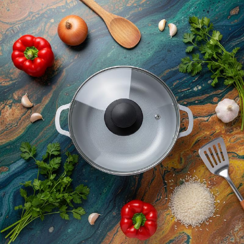 CALDERO UNIVERSAL DE ALUMINIO CON TAPA DE VIDRIO 20CM MKP N208MK
