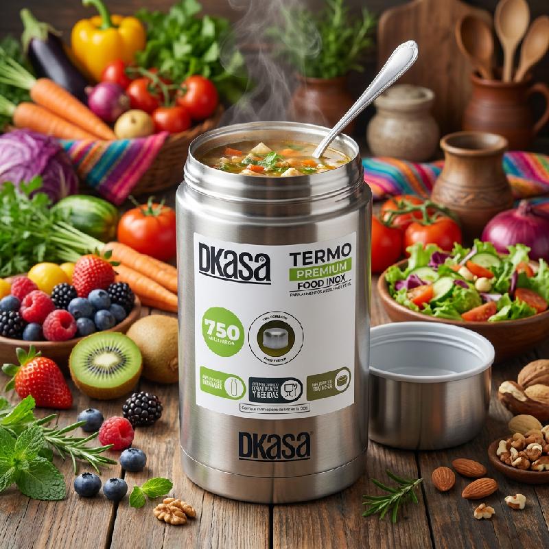 - Termo para alimentos marca DKASA, capacidad 0.75 litros (750 ml).