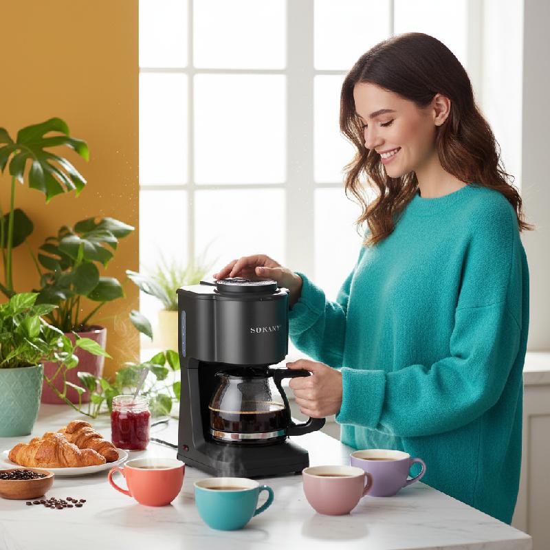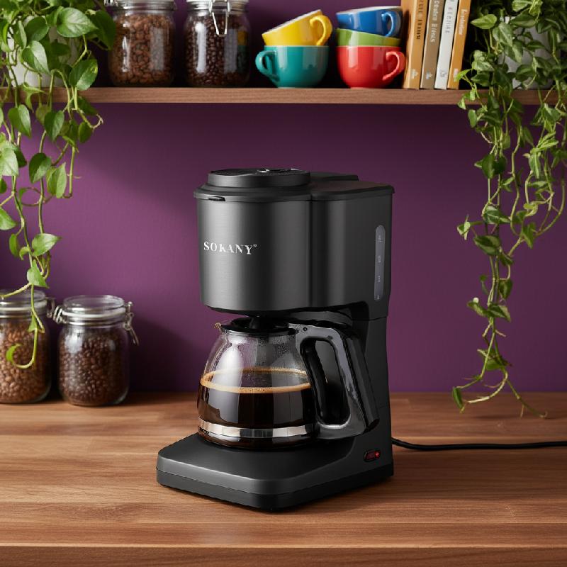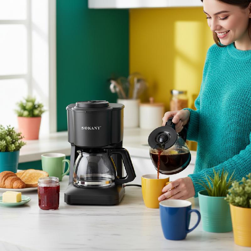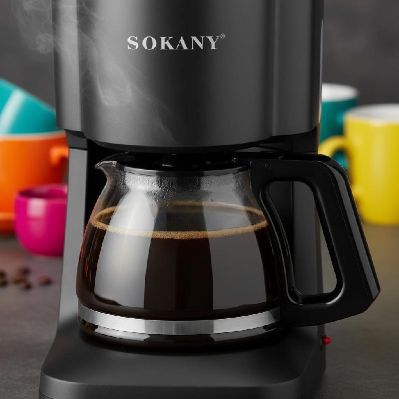 - Cafetera de goteo Sokany con capacidad para 6 tazas (aprox. 720 ml a 900 ml) ideal para hogares u oficinas pequeñas.