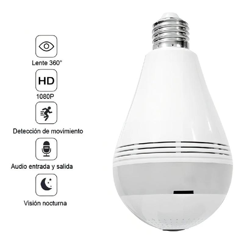 CAMARA DE SEGURIDAD ESPIA PANORAMICA EN FORMA DE BOMBILLO WIFI SMART NET V380 TC380