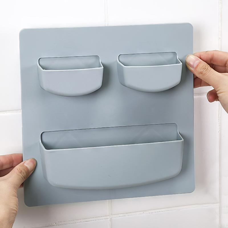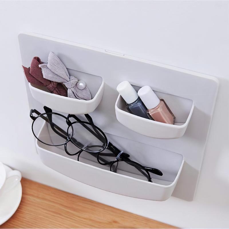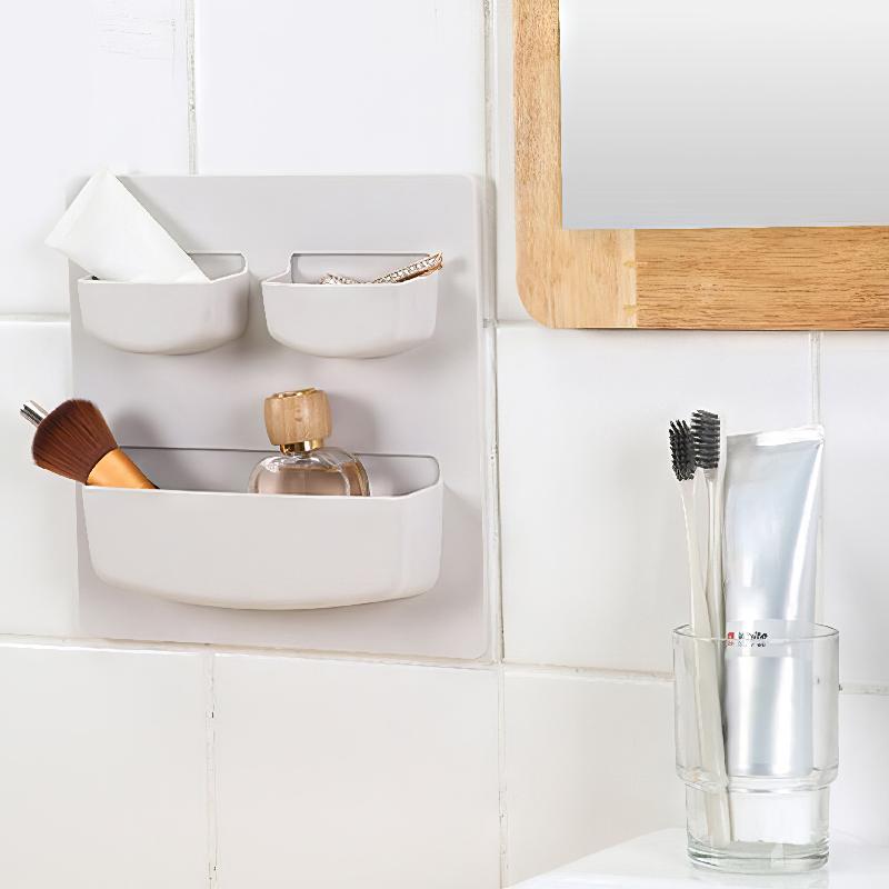 ESTANTE DE PARED MULTIFUNCIONAL CON ADHESIVO ORGANIZADOR DE 3 COMPARTIMENTOS HR5635
