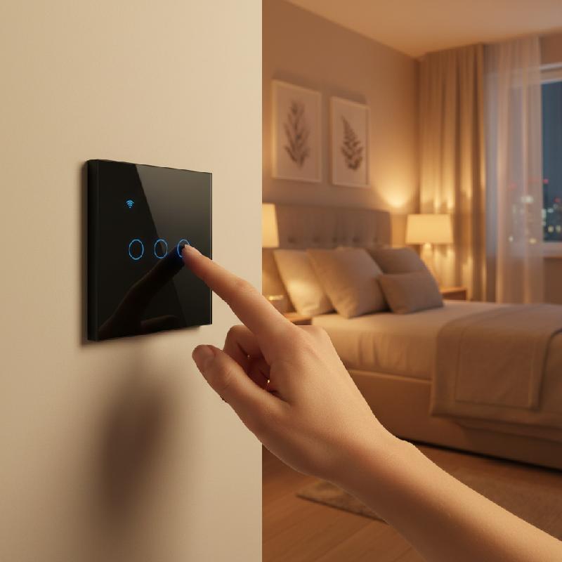 INTERRUPTOR TRIPLE WIFI NEGRO PANEL DE VIDRIO NEW LIGHT 600W MKP1 AC012MK
