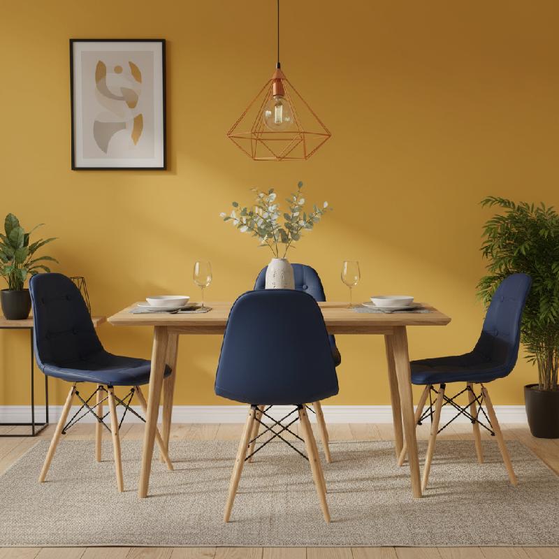 - Silla de comedor color Azul Carmen, diseño moderno ideal para hogar o espacios contemporáneos.