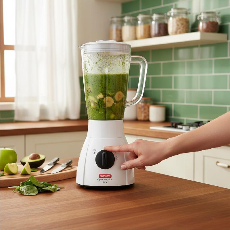 - Licuadora Samurai Optimix Plus con potente motor de 500W.
