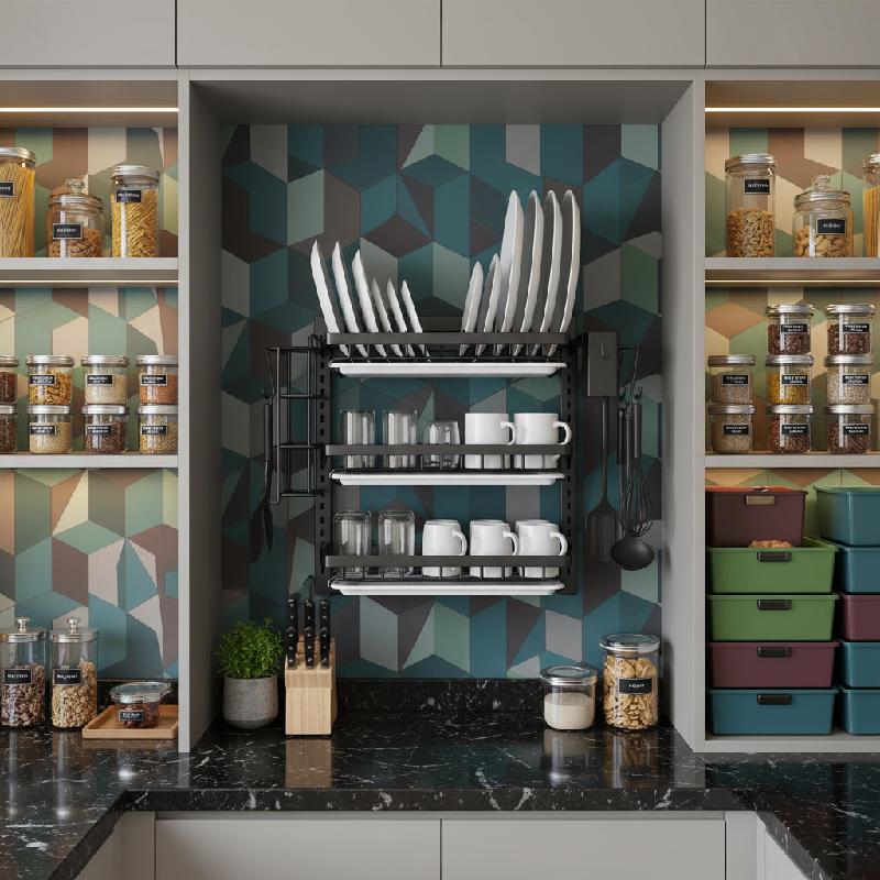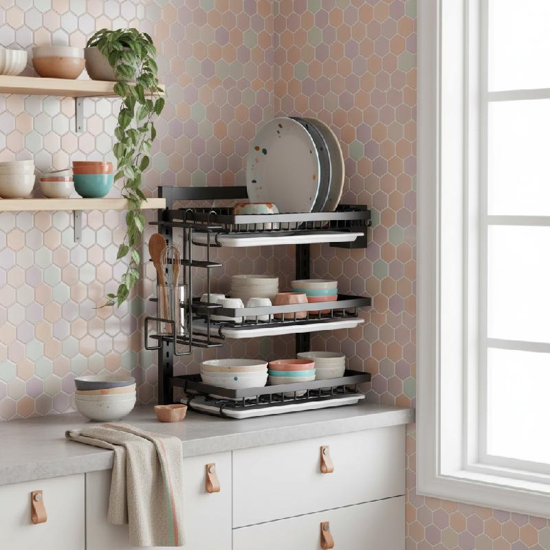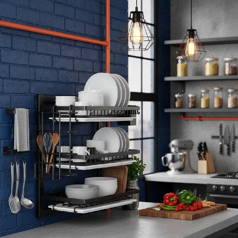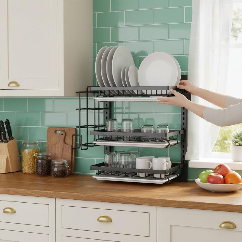 - Escurridor de loza para pared con diseño vertical de 3 niveles.