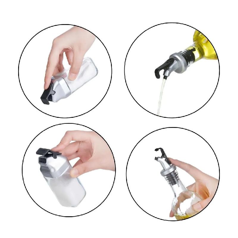 - Botellas de vidrio con pico vertedor: dosificá sin derrames y mantené la encimera limpia
