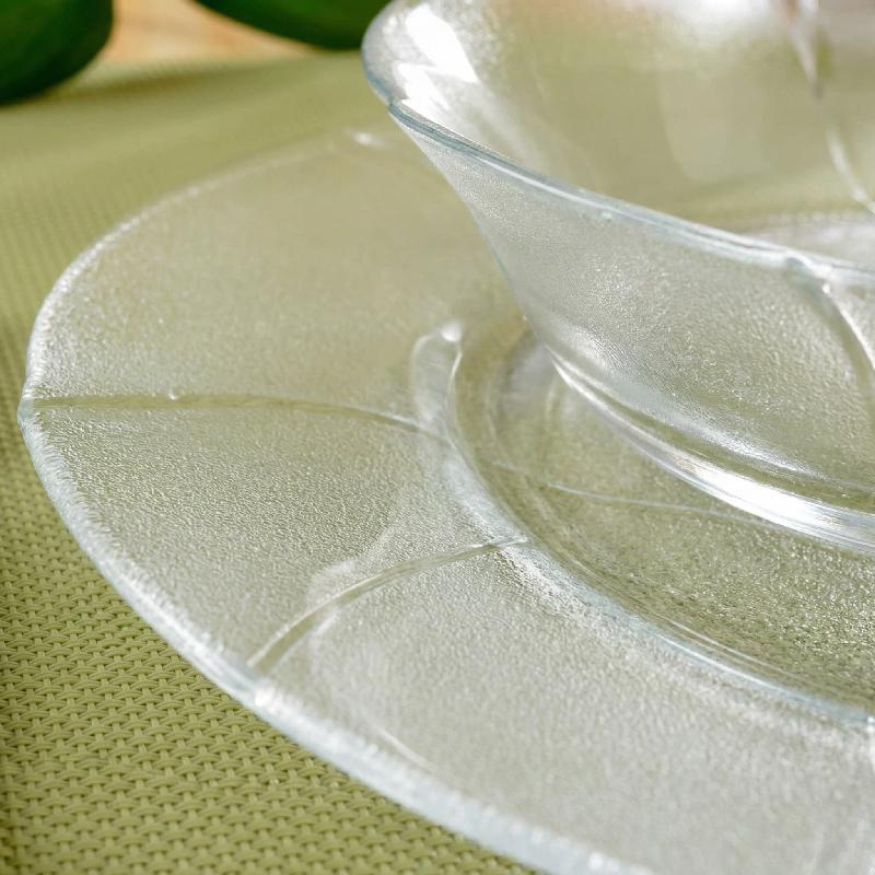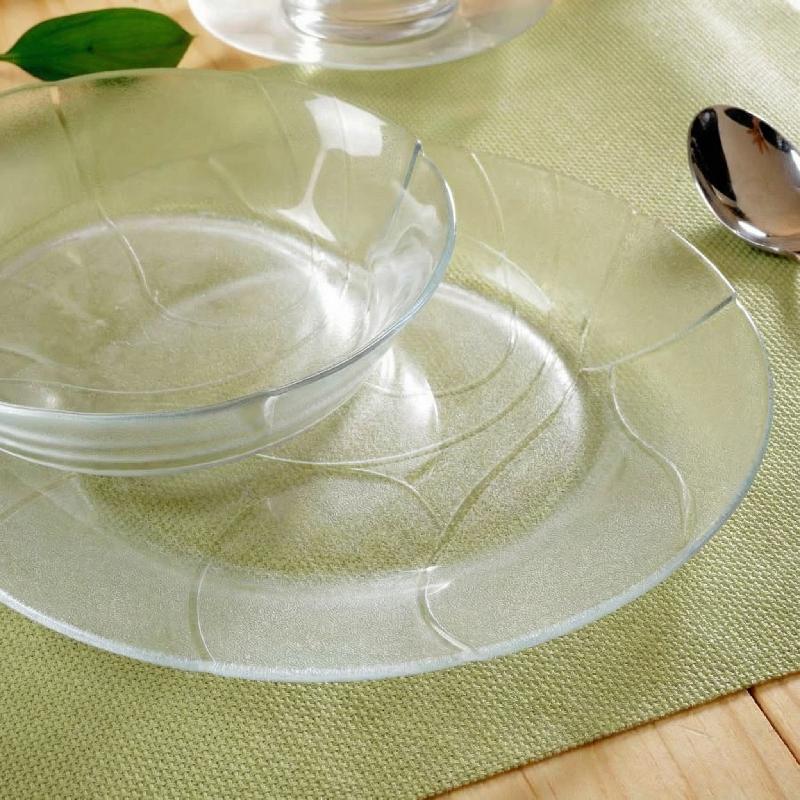 Elaborada en vidrio de alta calidad, esta vajilla ofrece una apariencia elegante y sofisticada, perfecta para cualquier ocasión, desde una cena informal hasta una reunión especial.