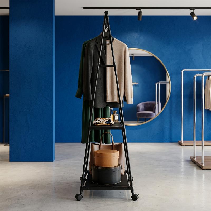 PERCHERO ROPA ESTANTE MÓVIL TRIANGULAR CON RUEDAS REF LORCA NEGRO MKP1 X043MK